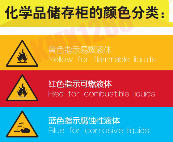 如果存放的是OSHA1910.106所提到的可燃的或易燃的化学品,存储设备建议采用基于美国防火协会第30条规定(NFPA 30)或者统一火灾法规79条(UFC 79)的规范所设计的防火安全柜。
